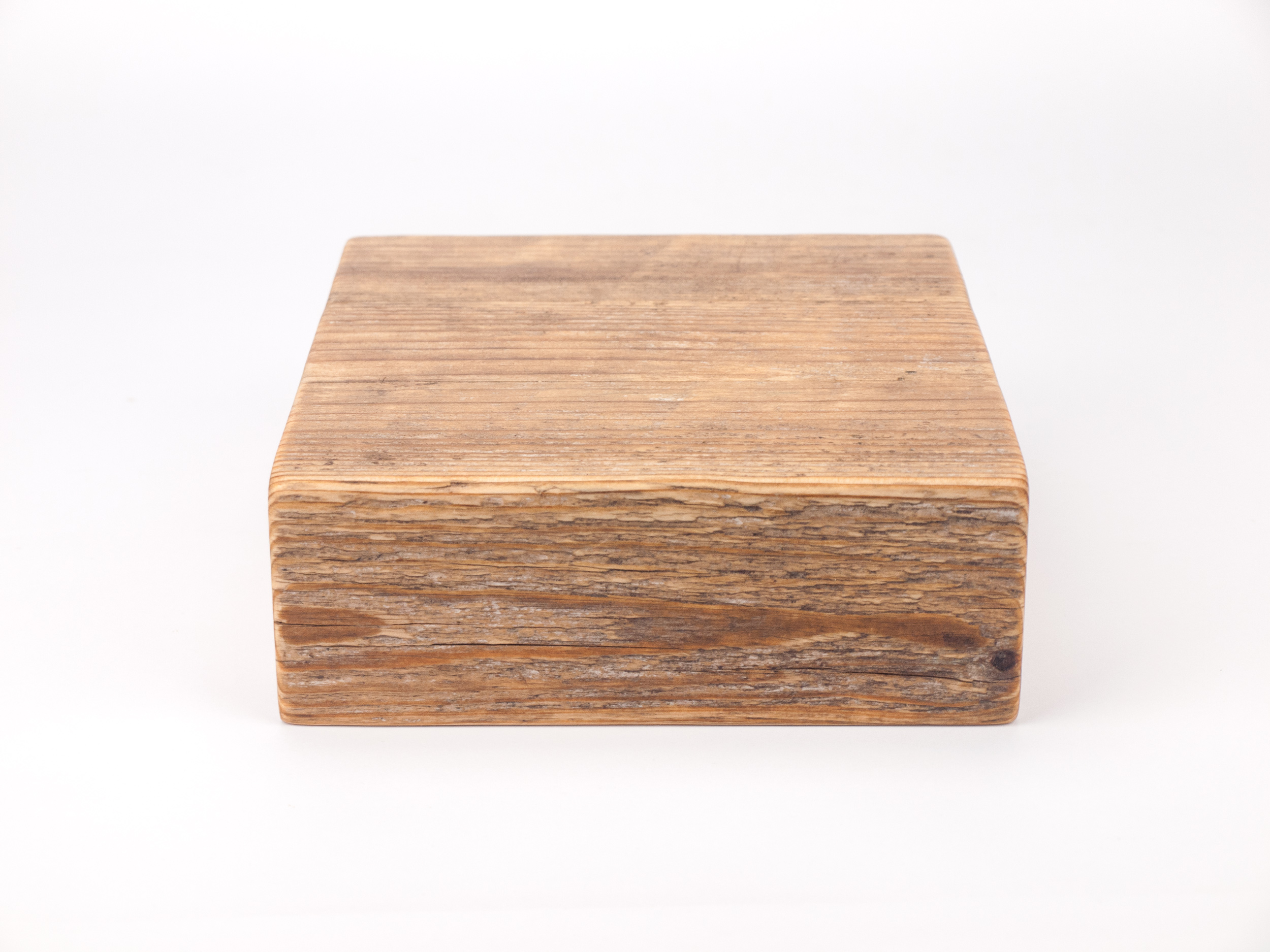 These rustic wood base/plinths are made from pieces of naturally weathered and aged timber that have acquired individual character and patina from their former use alongside weathering effects that only real exposure to the natural elements, sun, wind and rain, delivers over time.